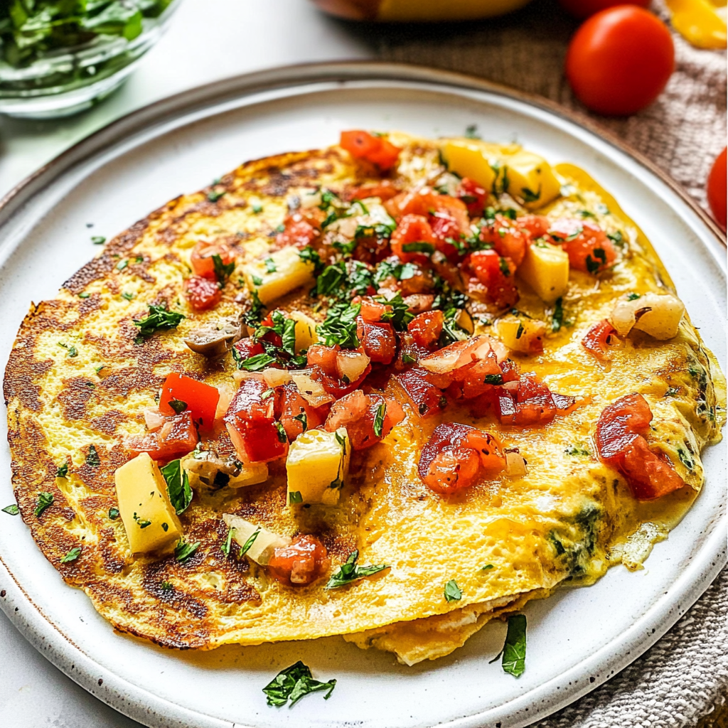 Start your day with a delightful omelette that combines fluffy eggs, vibrant vegetables, and creamy cheese. Perfect for breakfast, lunch, or dinner, this versatile dish allows you to mix and match your favorite ingredients for a personalized culinary adventure.