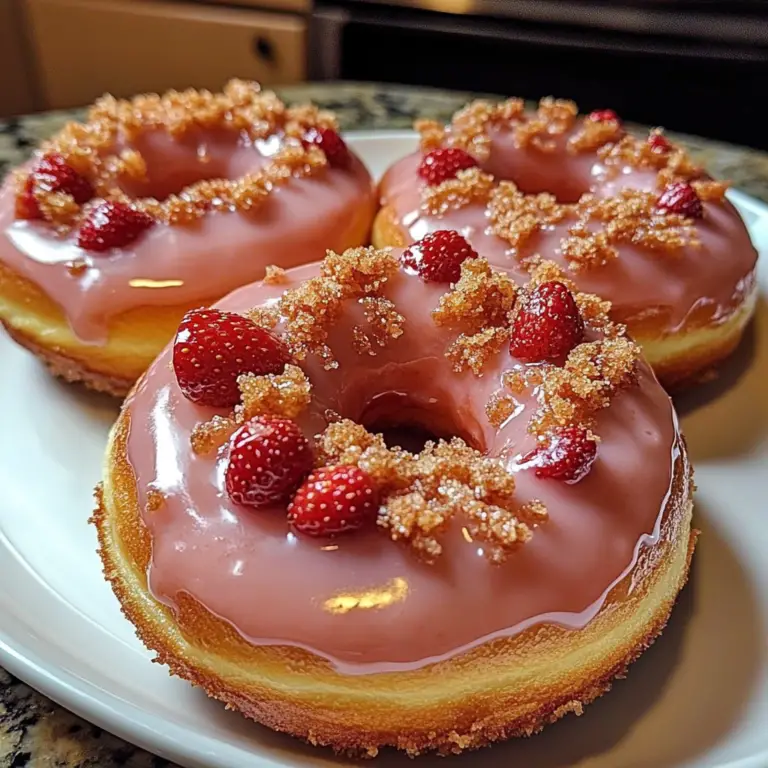 Irresistible Freshly Glazed Strawberry Crunch Donuts