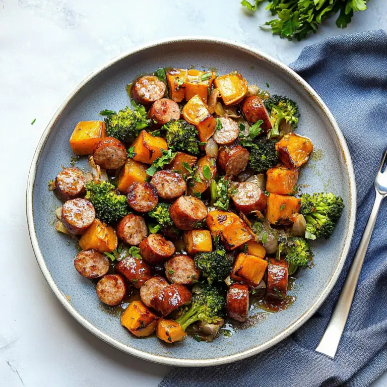 Easy Sheet Pan Sausage & Sweet Potatoes with Honey Garlic