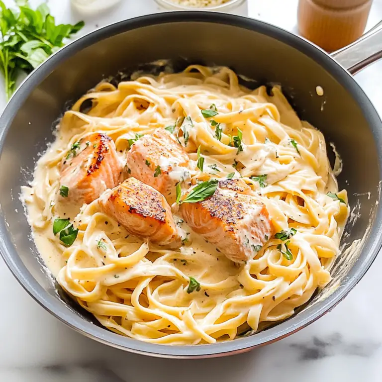 Indulge in Salmon Fettuccine Creamy Alfredo Delight