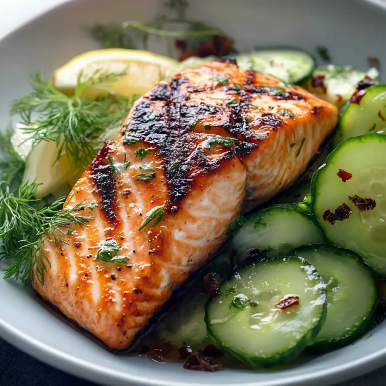 Lemon Dill Grilled Salmon with Cucumber Salad