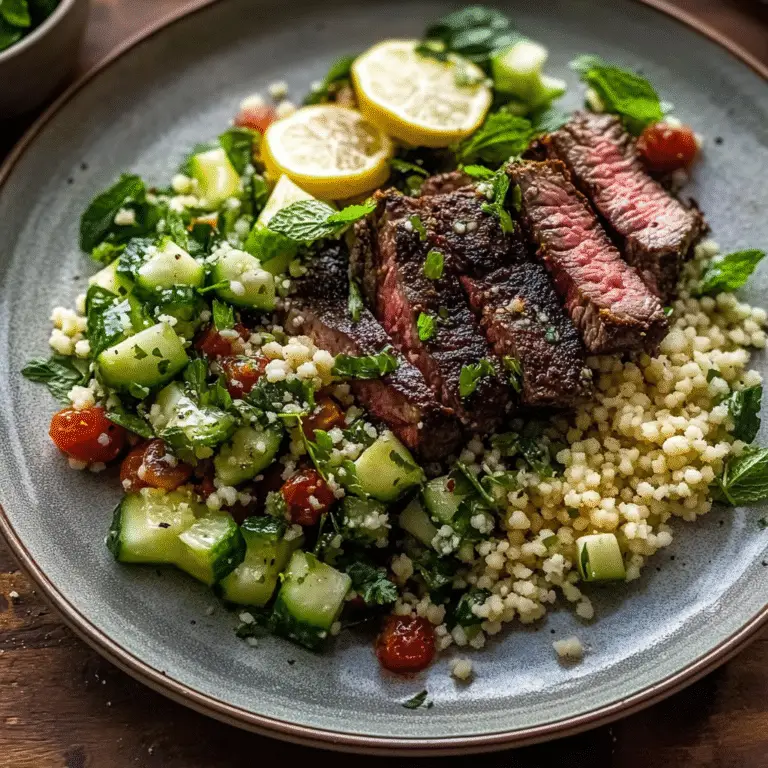 Grilled Skirt Steak with Lemon Herb Couscous Salad Recipe