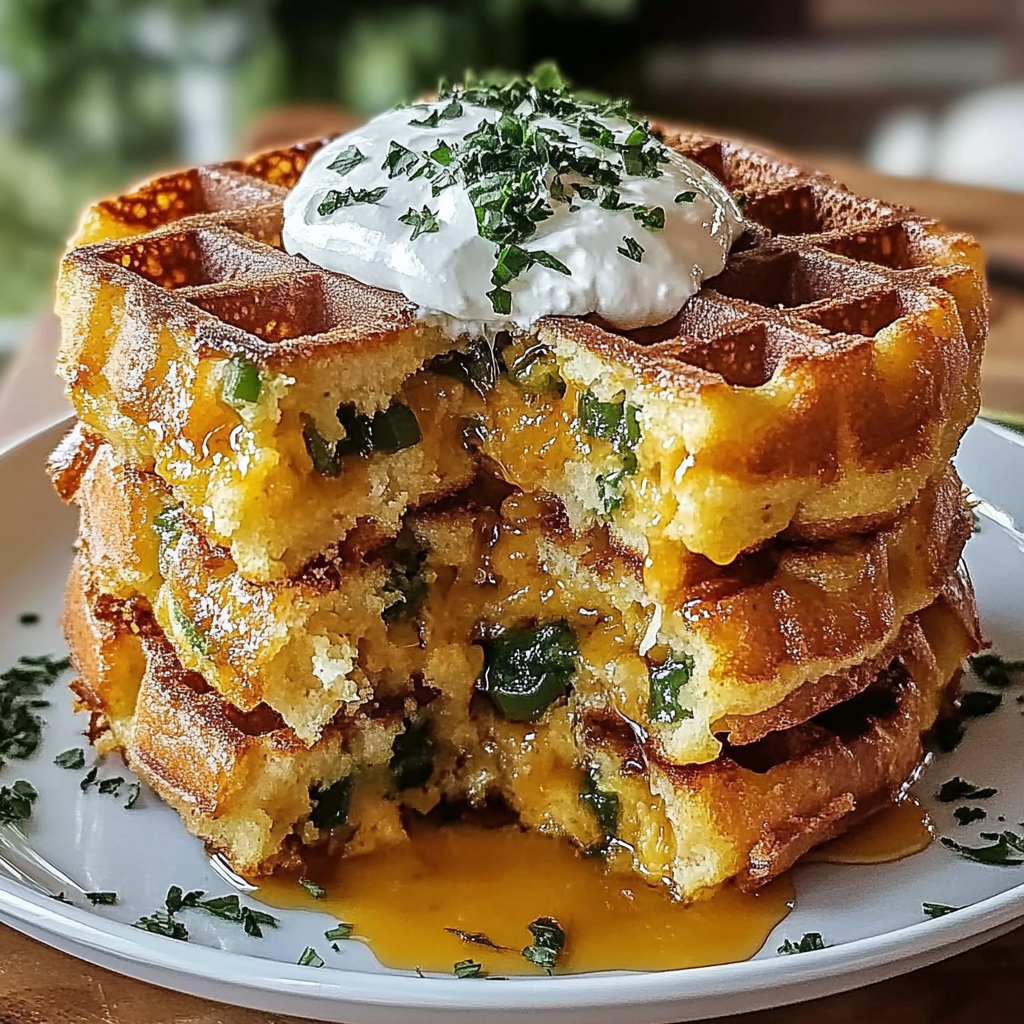 Cheddar Jalapeño Cornbread Waffles are a delightful fusion of savory flavors and textures that elevate any meal. With a crispy exterior and fluffy interior, these waffles are packed with sharp cheddar cheese and zesty jalapeños, making them perfect for breakfast, brunch, or dinner. Serve them warm with your favorite toppings for an unforgettable culinary experience that will leave everyone smiling.
