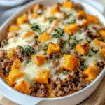Sweet Potato and Ground Turkey Bake is a delightful comfort food casserole that brings warmth and nostalgia to your dinner table. This easy-to-make dish features layers of tender ground turkey and sweet potato slices, all baked in a savory sauce topped with melted cheddar cheese. Perfect for chilly nights or meal prep, it’s a crowd-pleaser that will have everyone coming back for seconds!