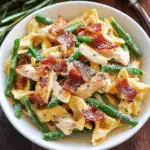Creamy Chicken Pasta with Green Beans and Bacon is a comforting, flavor-packed dish that combines tender chicken, crispy bacon, and vibrant green beans in a luscious creamy sauce. This recipe is perfect for busy weeknights or special gatherings, providing an impressive meal with minimal effort. The delightful blend of savory and fresh ingredients will make your taste buds dance, creating a memorable dining experience that everyone will love.