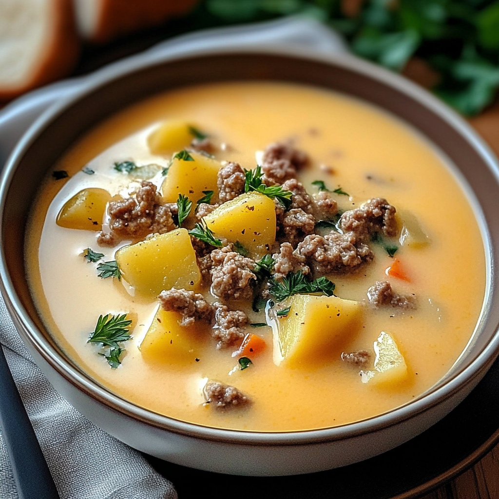 Indulge in the heartwarming comfort of Hamburger Potato Soup, a delightful blend of creamy broth, tender potatoes, and savory ground beef. This easy-to-make recipe is perfect for chilly evenings or cozy gatherings, promising to fill your kitchen with mouthwatering aromas. Topped with melted cheddar cheese, each spoonful offers a warm hug for your taste buds, making it a beloved family favorite.