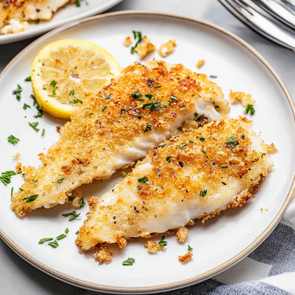 Coat the Tilapia Fillets: Pat each tilapia fillet dry with paper towels. Drizzle olive oil over both sides of each fillet before pressing them gently into the breadcrumb mixture ensuring even coverage.