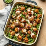 Form Meatballs: With clean hands or a scoop, form mixture into golf ball-sized meatballs. Place them in your prepared baking dish evenly spaced apart.