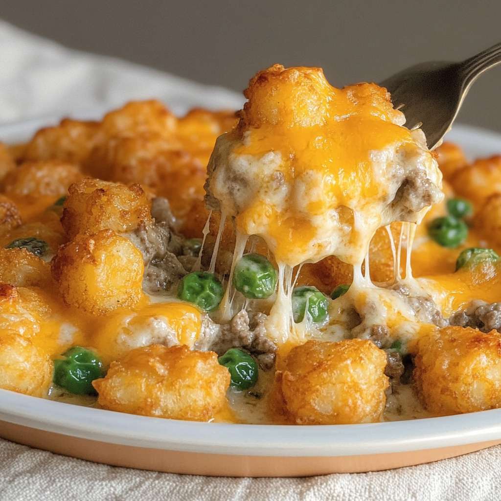 - Tater Tot Casserole Bake is a crowd-pleaser that combines crispy tots, savory meat, and creamy sauce