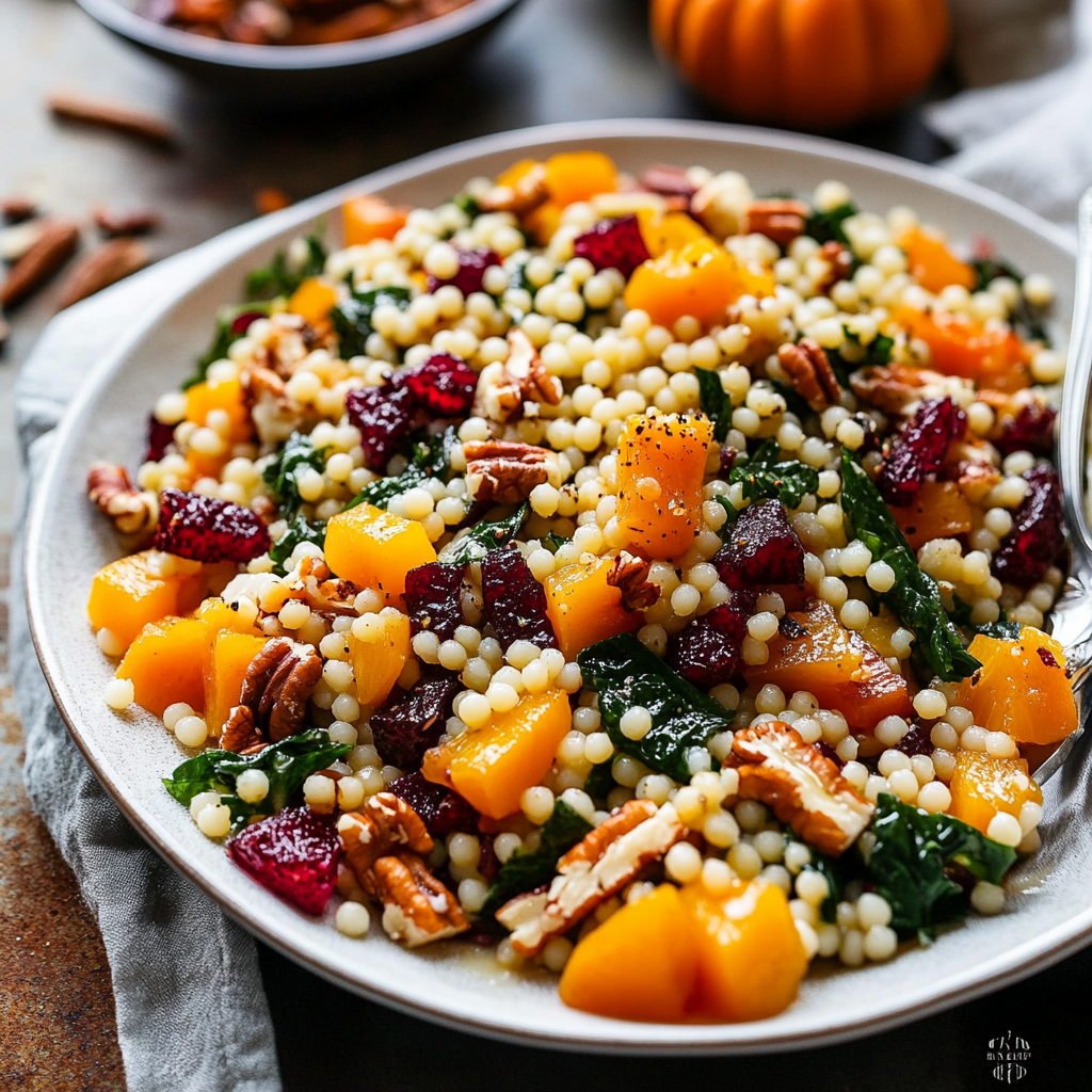 Autumn Pearl Couscous Salad with Maple-Cider Vinaigrette is a vibrant and delicious dish that embodies the flavors of fall. With tender Israeli couscous, crisp apples, toasted pecans, and a delightful maple-cider dressing, this salad is perfect for gatherings or as a light meal. Easy to prepare, it will impress your guests and leave them asking for the recipe!