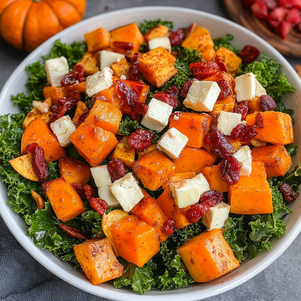 Cinnamon Roasted Butternut Squash & Kale Salad is a vibrant and delicious dish that perfectly balances sweet and savory flavors. This colorful salad features caramelized butternut squash, crisp kale, and a hint of cinnamon, all drizzled with maple syrup for an extra touch of sweetness. Topped with toasted walnuts and optional feta cheese, this recipe is ideal for cozy autumn evenings or festive gatherings. It’s easy to prepare and sure to impress even the pickiest eaters at your table!
