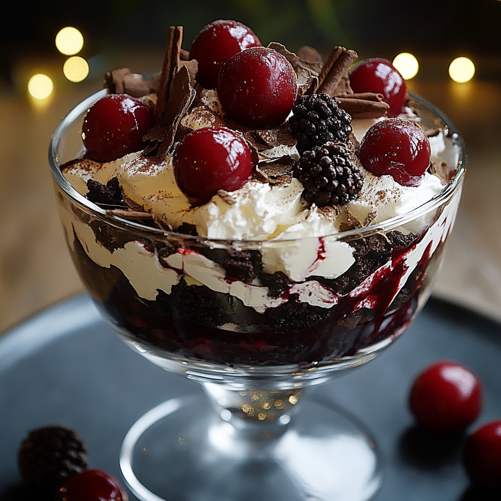 - This Black Forest Trifle Christmas dessert is a festive showstopper, combining rich chocolate and whipped cream