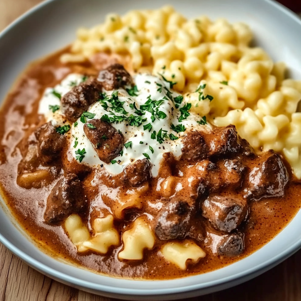 Creamy German goulash is a comforting dish that combines tender chunks of beef in a rich, velvety sauce infused with smoky paprika and aromatic spices. Perfect for gatherings or cozy nights, this one-pot wonder is easy to prepare and sure to impress. With its delightful blend of flavors, each spoonful brings warmth and satisfaction, making it an unforgettable addition to your dinner table.