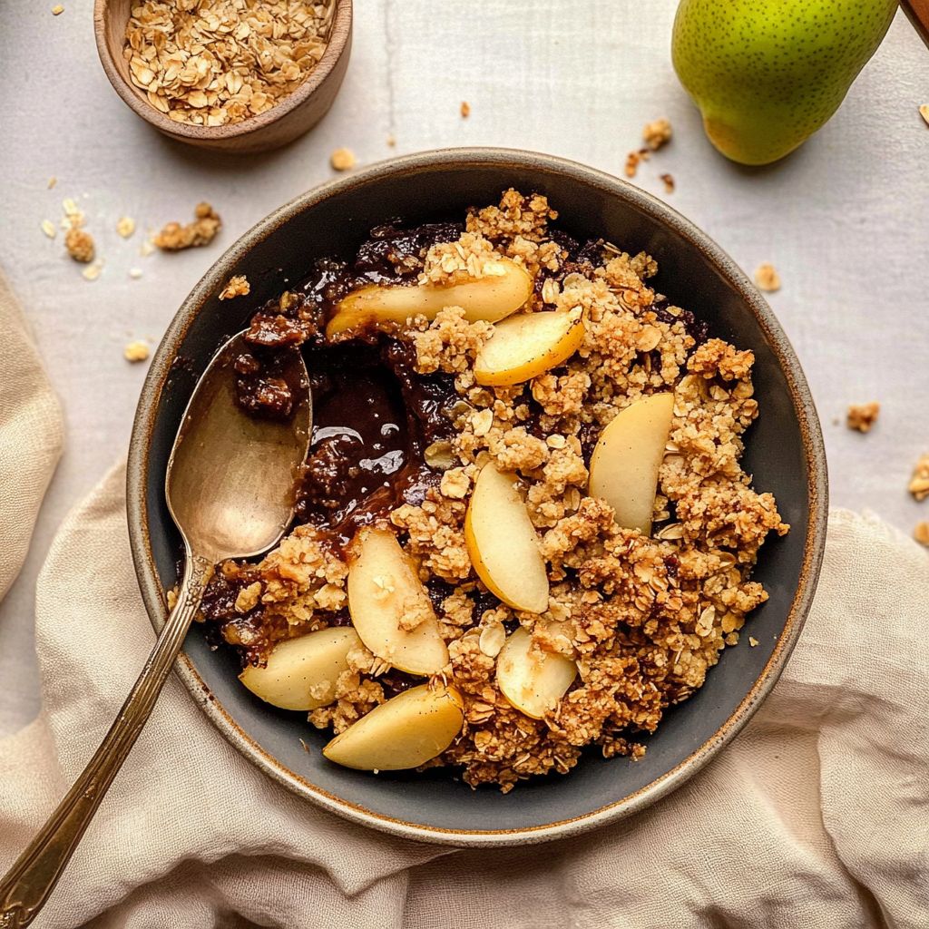 Chocolate Pear Crumble is a delightful dessert that combines the sweetness of ripe pears and rich dark chocolate, all topped with a crunchy, buttery crumble. This warm treat is perfect for cozy gatherings or quiet nights in, creating a memorable experience with every spoonful. Serve it warm with a scoop of vanilla ice cream for an indulgent finish that will make everyone ask for seconds.