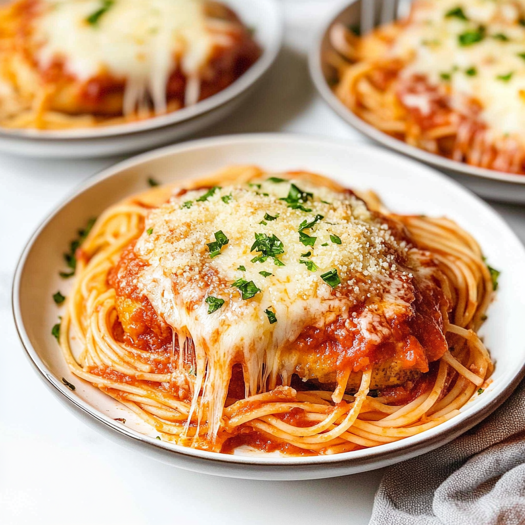 Chicken Parmesan with Spaghetti is the ultimate comfort food, combining crispy, golden chicken topped with rich marinara and melted cheese, served alongside perfectly cooked spaghetti. This dish transports you to family gatherings filled with laughter and delicious aromas. Easy to prepare, it’s perfect for any occasion—from cozy weeknights to festive celebrations.