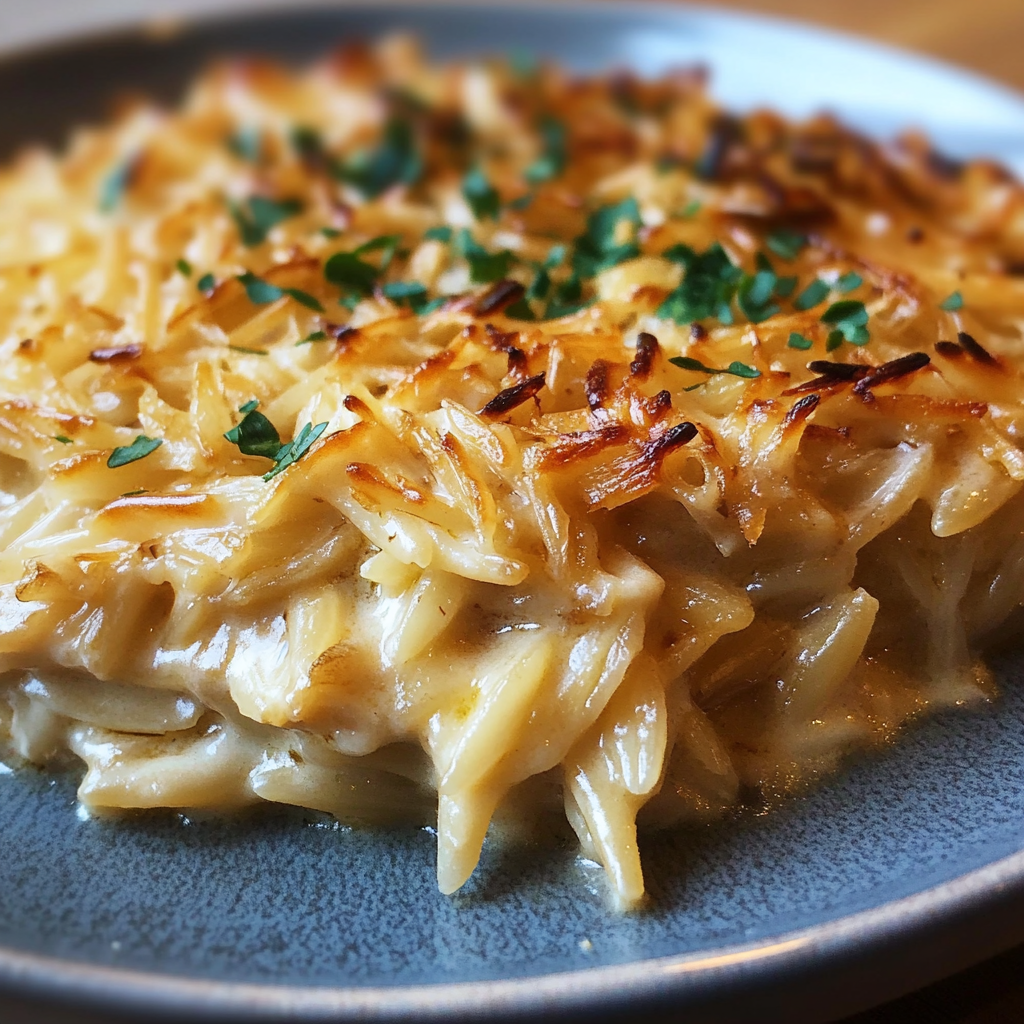 - The French Onion Chicken Orzo Casserole is a comforting dish that combines tender chicken, creamy orzo, and rich onion flavors