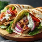 Assembling Your Gyros: Slice the cooked chicken into strips and layer them onto warmed pita bread. Generously spoon tzatziki over the top along with any additional toppings like lettuce or tomatoes. Wrap it up tightly like it’s about to embark on an exciting adventure!