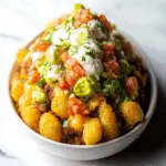 Loaded Tater Tots are the ultimate crowd-pleasing comfort food, perfect for any occasion. These golden-brown potato bites are topped with melted cheddar cheese, crispy bacon bits, tangy sour cream, and vibrant green onions. Easy to prepare and endlessly customizable, each bite delivers a delightful crunch followed by gooey goodness that will leave everyone asking for more.