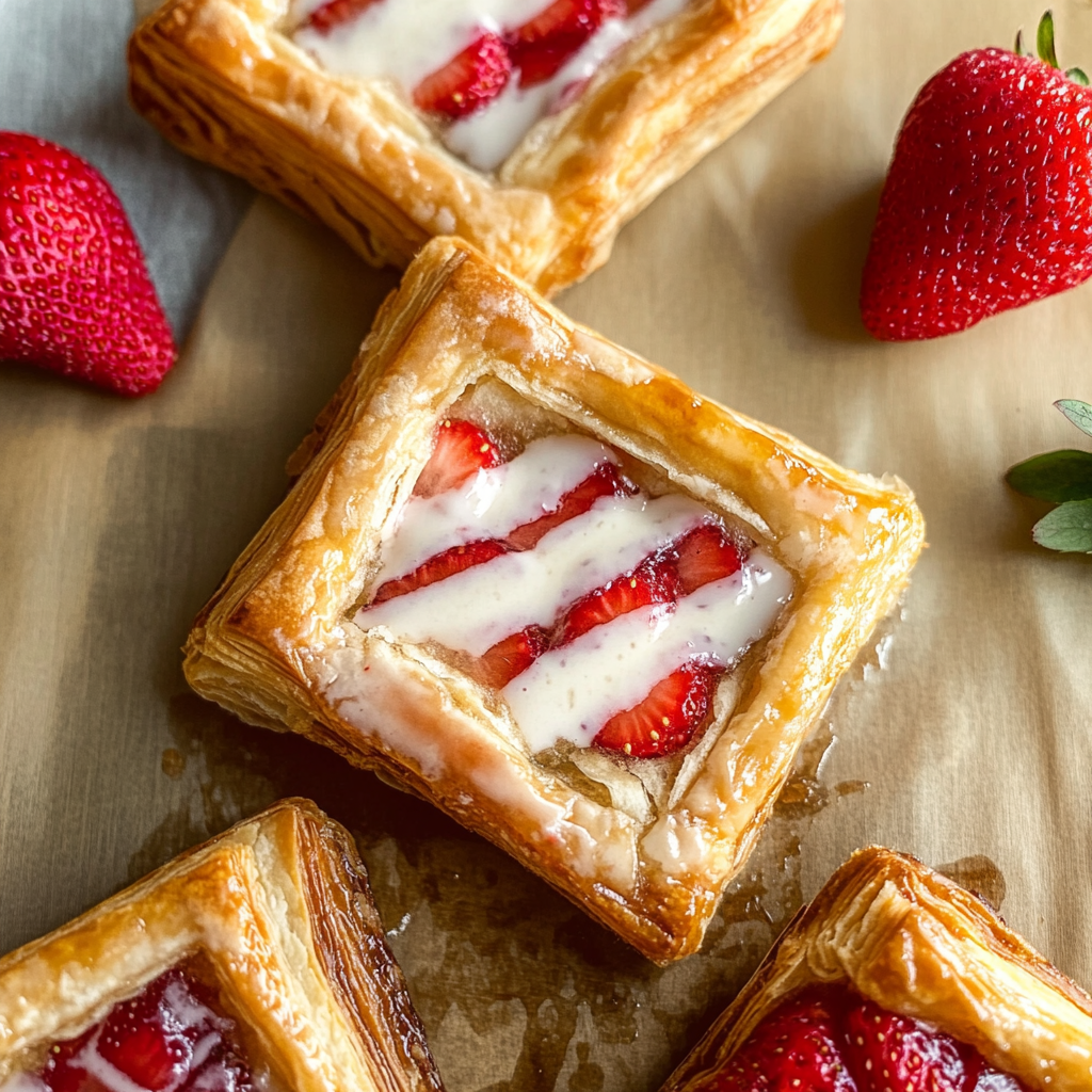 Indulge in the delightful experience of Puff Pastry Strawberry Strudels! These golden, flaky pastries are filled with sweet, juicy strawberries and a hint of vanilla, creating a perfect balance of flavor. Ideal for brunch or dessert, they bring joy to any occasion with their irresistible aroma and charming presentation.