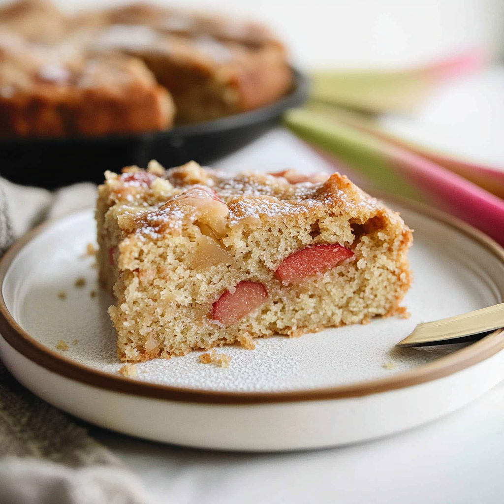 Feel free to swap out rhubarb for other fruits like strawberries or blueberries. You can also sprinkle in some cinnamon or nutmeg to deepen the flavor profile and add warmth to the cake.
