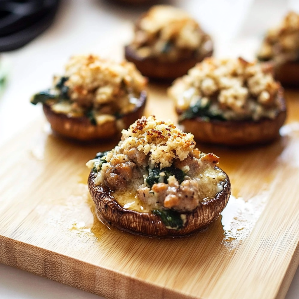 Start by preheating your oven while you prepare the stuffing. Sauté the sausage and veggies until golden before mixing in the cheese. Finally, stuff those mushrooms generously and bake until bubbly.
