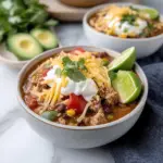 To make Slow Cooker Taco Soup, you’ll need ground beef or turkey, taco seasoning, canned beans (like black and kidney beans), corn, diced tomatoes, and bell peppers. You can also add onion and garlic for extra flavor. Don’t forget to top it with shredded cheese, sour cream, and fresh cilantro when serving. This hearty soup is easy to customize based on your preferences and what you have on hand.