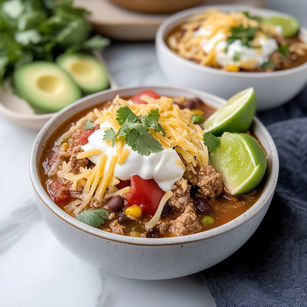 Slow Cooker Taco Soup is a delicious and hearty dish that brings the vibrant flavors of Mexican cuisine right to your dinner table with minimal effort. This easy-to-make soup combines tender ground meat, nutritious black beans, sweet corn, and zesty spices, creating a comforting meal perfect for busy weeknights or cozy gatherings. Each bowl offers a delightful fiesta for your taste buds, topped with fresh cilantro for an added burst of flavor.