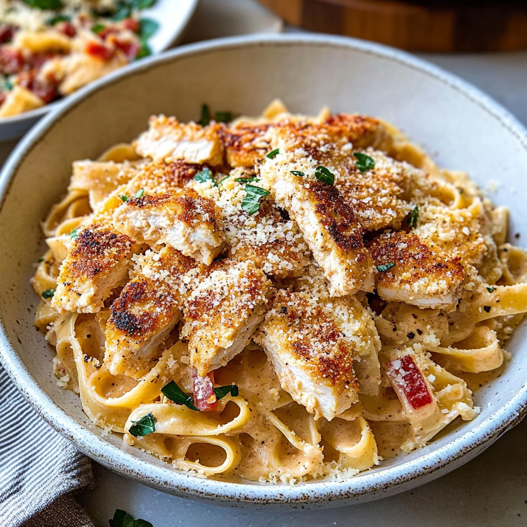 Indulge in the rich flavors of Southern Style Creamy Parmesan Chicken Pasta, a dish that elevates any meal into a delightful experience. This easy-to-make recipe features tender chicken enveloped in a creamy garlic parmesan sauce, paired with your favorite pasta. Perfect for family dinners or entertaining guests, this comforting dish promises to impress and satisfy!