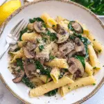 This dish isn’t just about taste; it’s a warm hug on a plate that transports you to simpler times. Picture yourself sharing this meal with loved ones on a cozy evening, laughter filling the air as you dig into this comforting bowl of goodness. Whether it’s a weeknight dinner or a special occasion, spinach mushroom pasta promises to be an unforgettable experience.