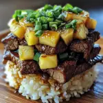 When you think of a plate that looks like summer and tastes like a tropical vacation, the Teriyaki Beef Pineapple Rice Stack should pop into your mind. Picture tender beef glistening in a sweet, savory sauce, nestled atop a fluffy bed of rice and surrounded by vibrant pineapple chunks. The aroma wafts through the air, teasing your senses and making your taste buds dance with excitement.
