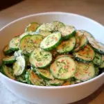 Add your sliced cucumbers into the bowl with the dressing. Gently toss everything together until each cucumber slice is coated in that tangy goodness. You want every bite to be bursting with flavor!