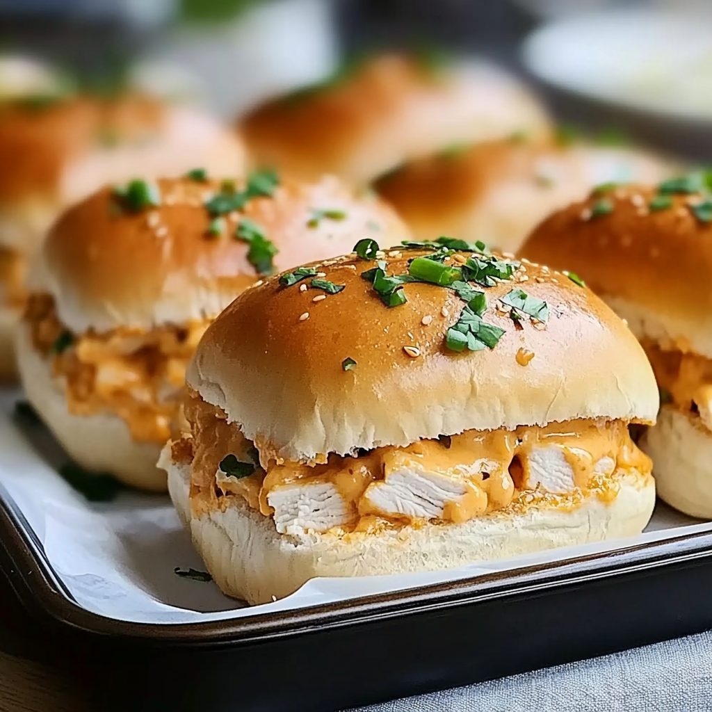 - Slice the Hawaiian rolls open and fill each with a generous portion of the chicken mixture.