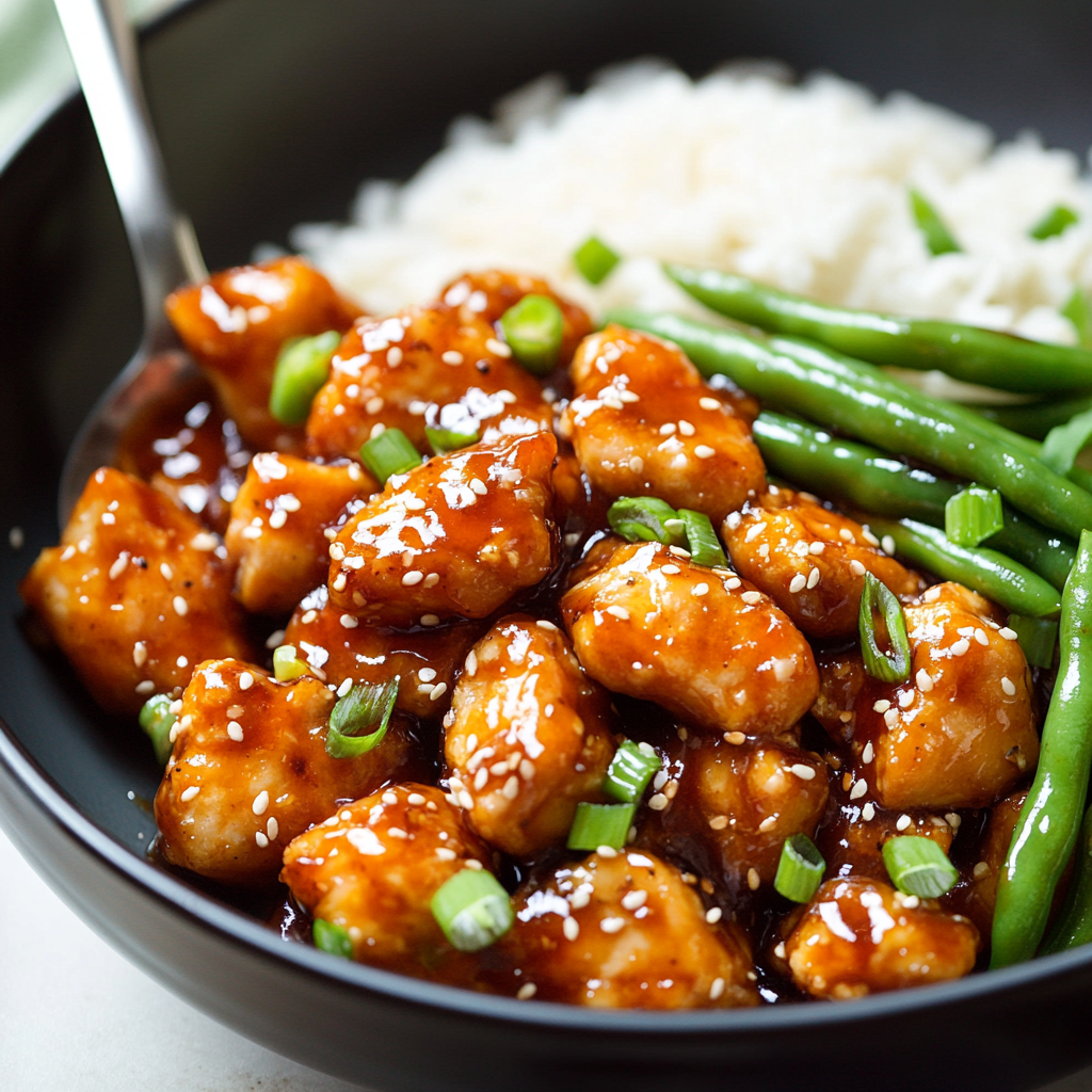 Savor the delightful flavors of tender sesame chicken paired with vibrant green beans and fluffy rice. This easy recipe is perfect for busy weeknights or impressing guests with minimal effort.