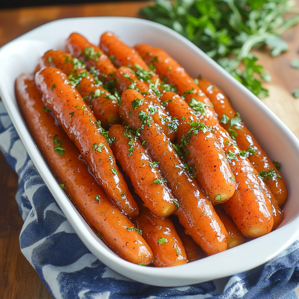 In summary, Maple and Brown Sugar Glazed Carrots are a delightful side dish that brings together sweet flavors with earthy undertones. The combination of maple syrup and brown sugar creates a rich glaze that elevates simple carrots into something extraordinary. Perfectly paired with proteins like roasted chicken or grilled salmon, this recipe is versatile enough for any occasion. Whether you’re preparing for a family dinner or special celebration, these glazed carrots will surely impress your guests while providing comfort on every plate. Enjoy this easy yet elegant dish at your next meal.